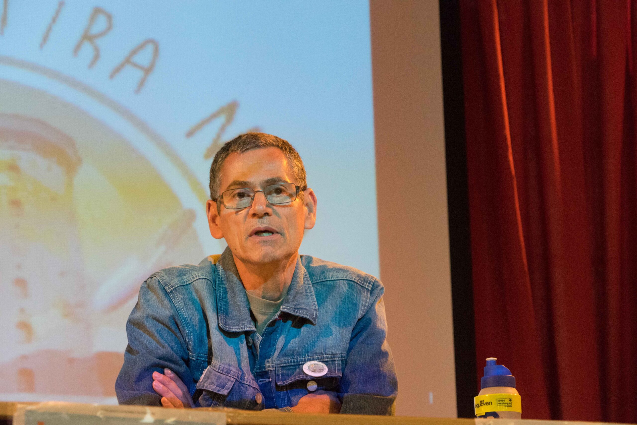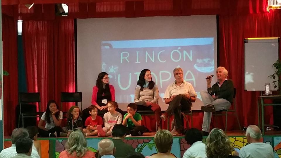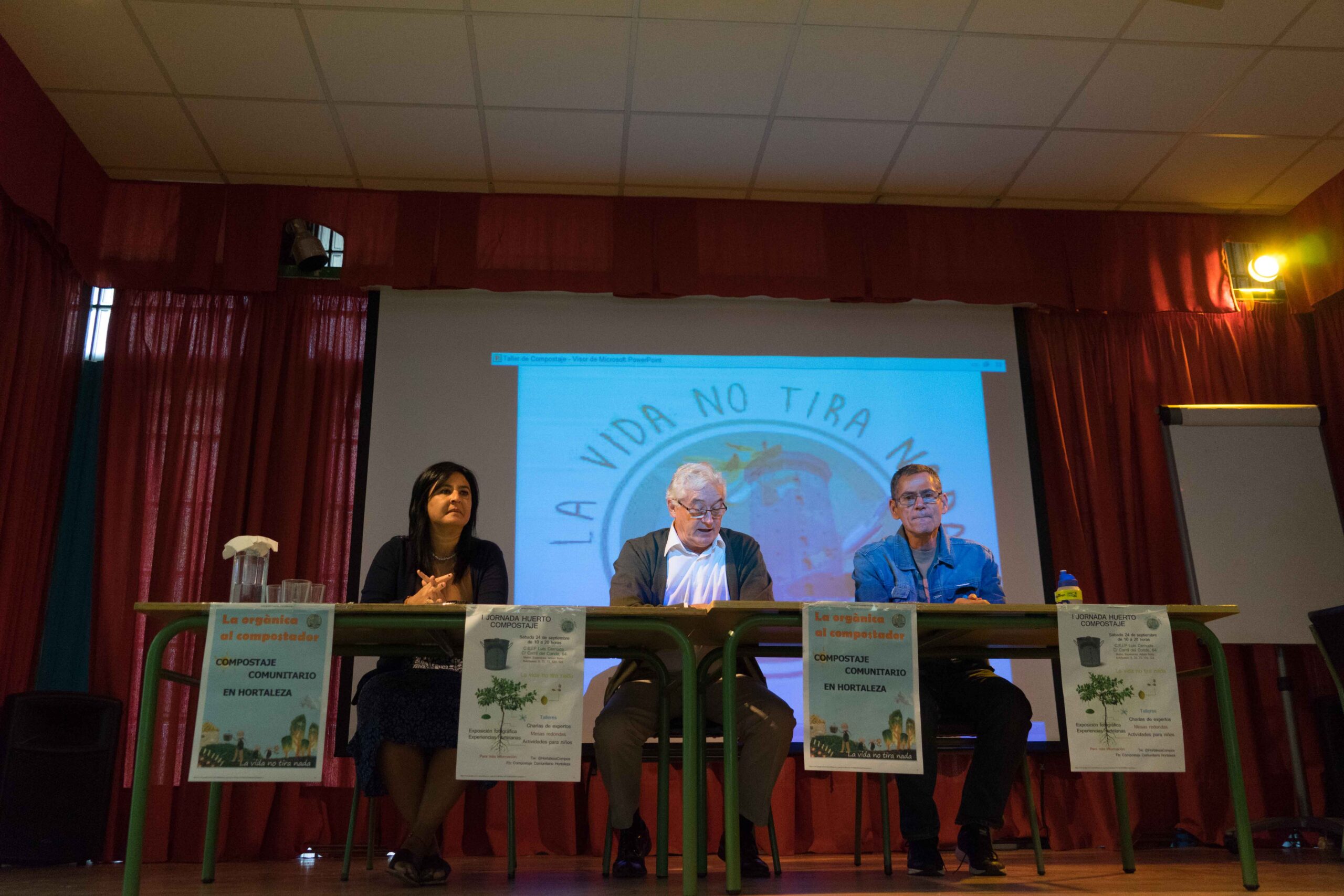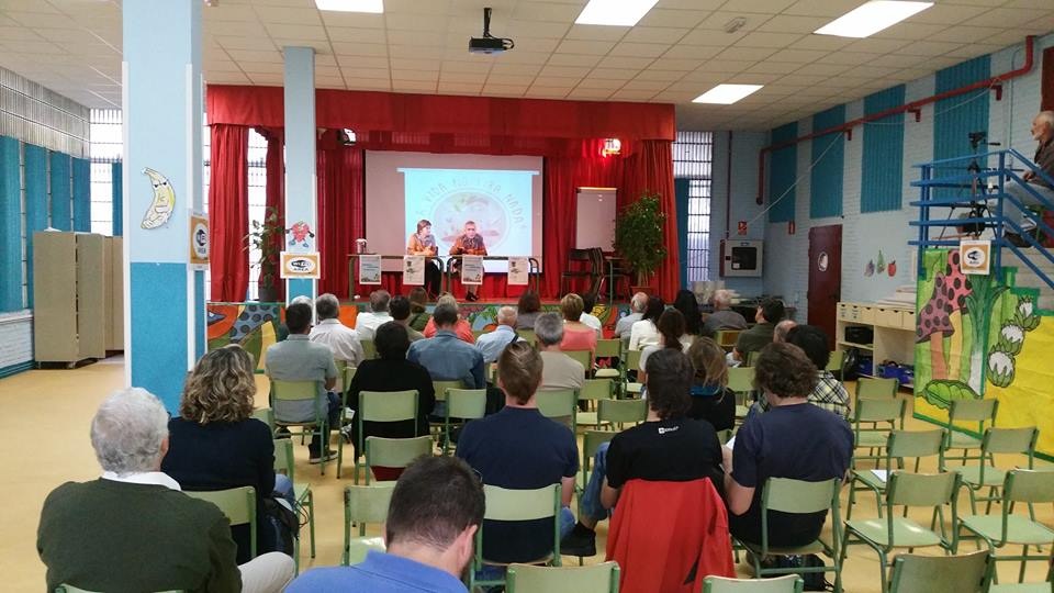 Seguidamente se inicia la primera Mesa Redonda: «Experiencias locales: Huertos y compostaje escolares y comunitarios», en la que nos cuentan sus experiencias el Jefe de Estudios del C.P Esperanza, Manolo Zafra, Mariam del Huerto de VillaRosa , Floren del Huerto de Manoteras y Marta junto con los hortelanos más menudos del C.P Luis Cernuda.