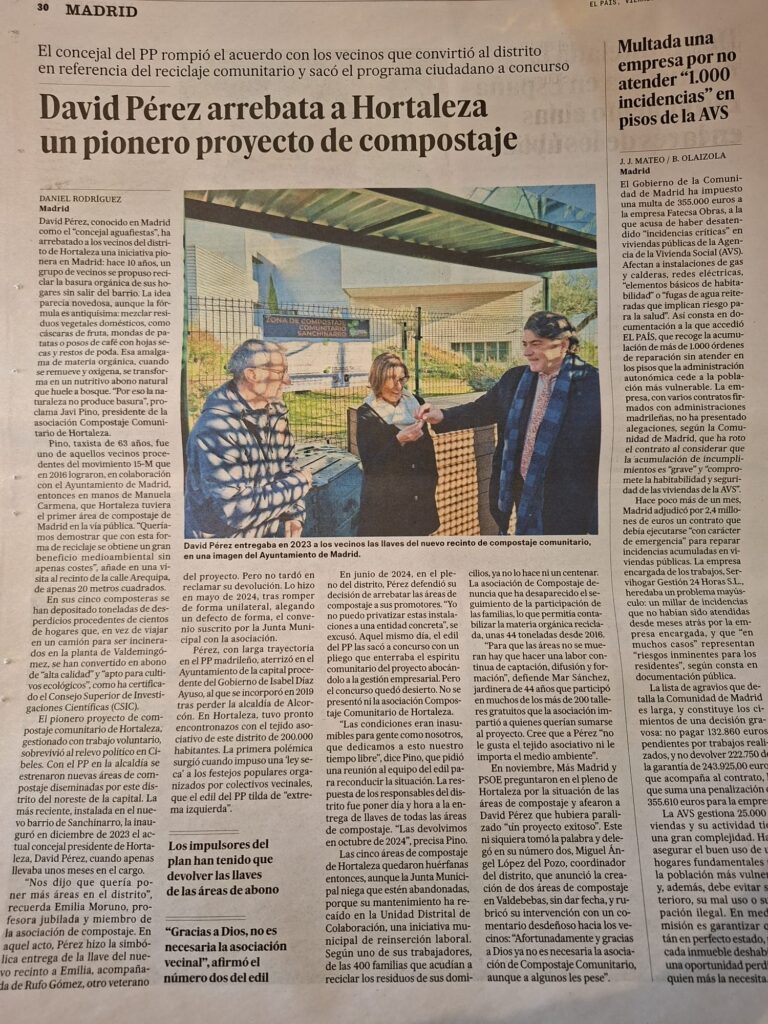 Mi participación en el compostaje era a diario, guardando los restos orgánicos de toda la familia y llevándolos una vez a la semana a las composteras comunitarias en el Pueblo de Hortaleza. Allí íbamos anotando la cantidad de restos que llevábamos para luego, otra parte del equipo sacar la cantidad de compost que conseguíamos de una manera tan bonita.