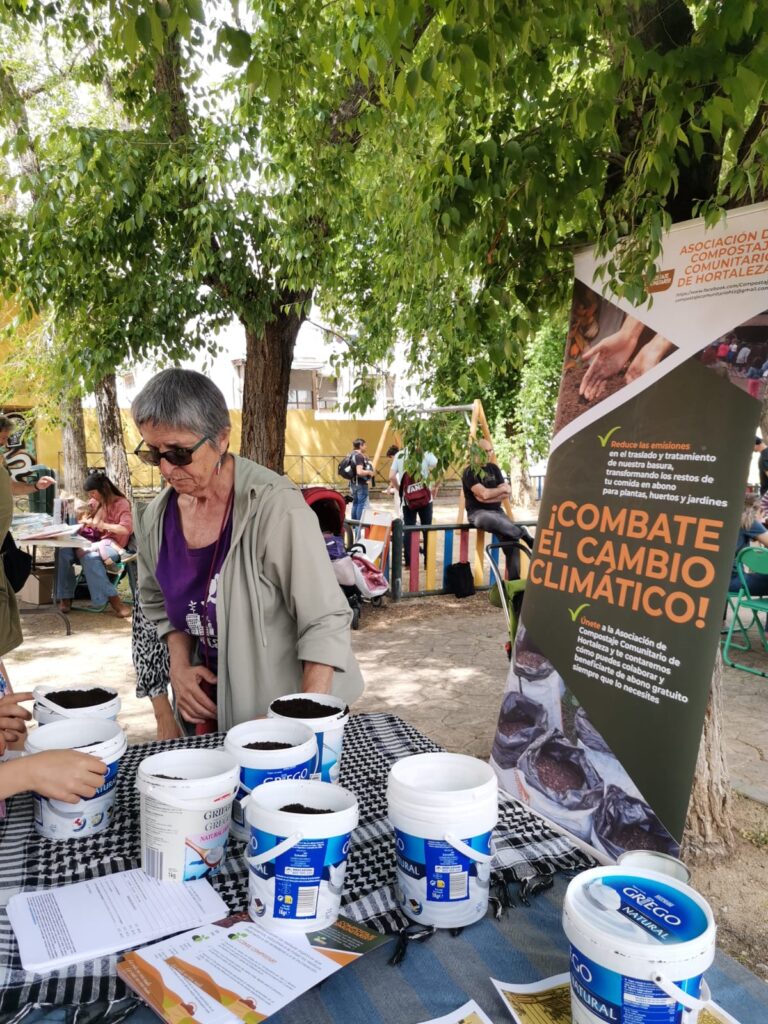 Ese era otro tipo de taller que dábamos de manera individual al entregarles el cubito para empezar a compostar. También el poder contribuir a hacer un mundo mejor haciendo algo que ya mis abuelos y mis padres, hacían en el pueblo: la basura convertirla en oro sin coste alguno. El compartir muchos momentos con vecinos, conocer a gente del barrio, aprender de ellos… hacer barrio.
